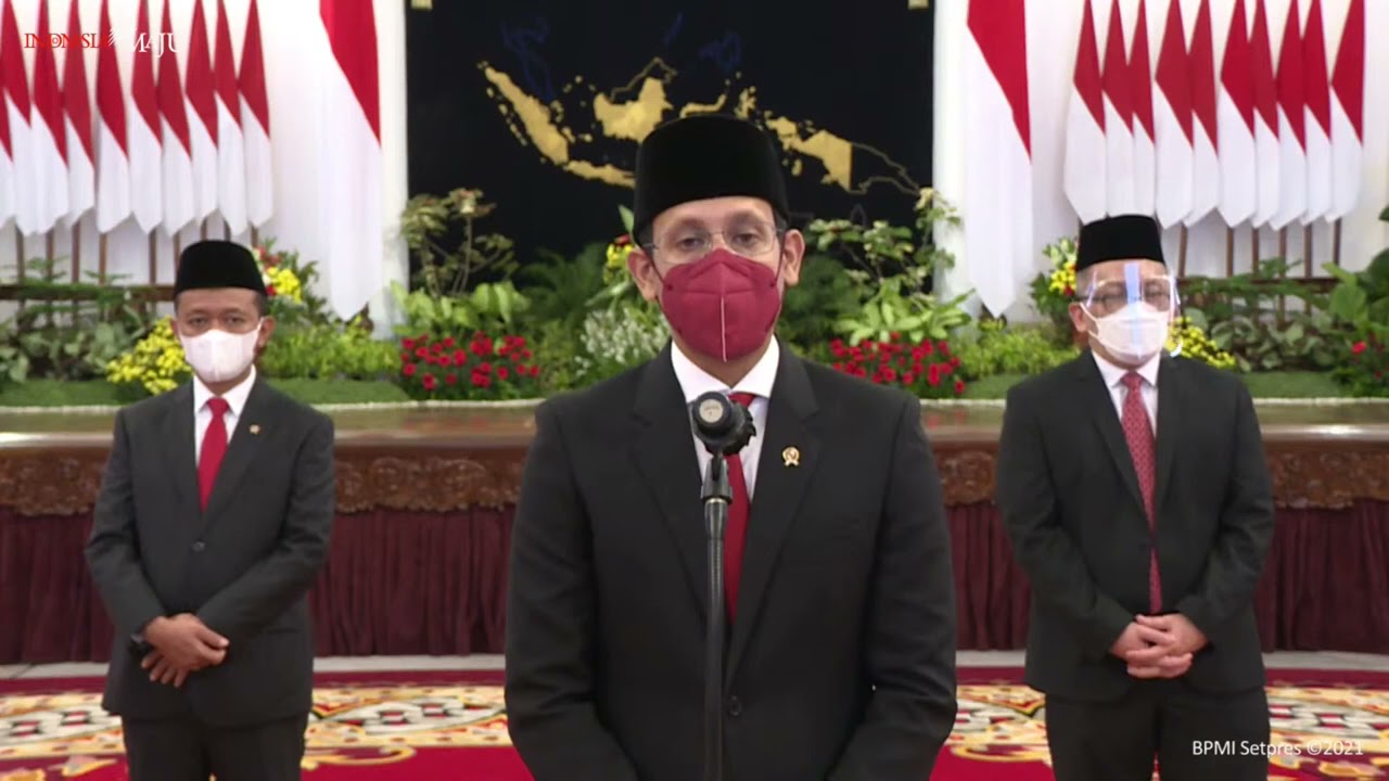 Keterangan pers bersama usai pelantikan Menteri Investasi/Kepala BKPM, Mendikbudristek, dan Kepala BRIN, di Istana Negara, Jakarta, Rabu (28/04/2021). Sumber :Setkab